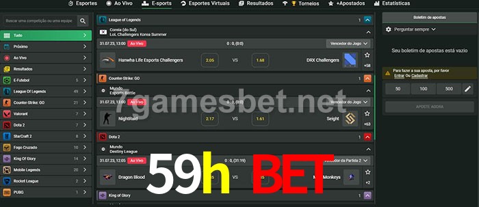 A aposta 59h bet oferece aos jogadores a experiência mais conveniente de apostas em eSports!
